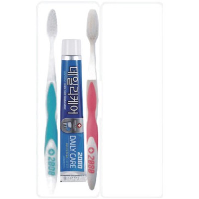 | 기타사항 | 휴대용세트(포장지포장별도 200원) •Size : 200ⅹ65ⅹ30mm •2080치약50g, 2080칫솔2개 ※구성품 교체 가능 / 칼라인쇄시 100원추가 |